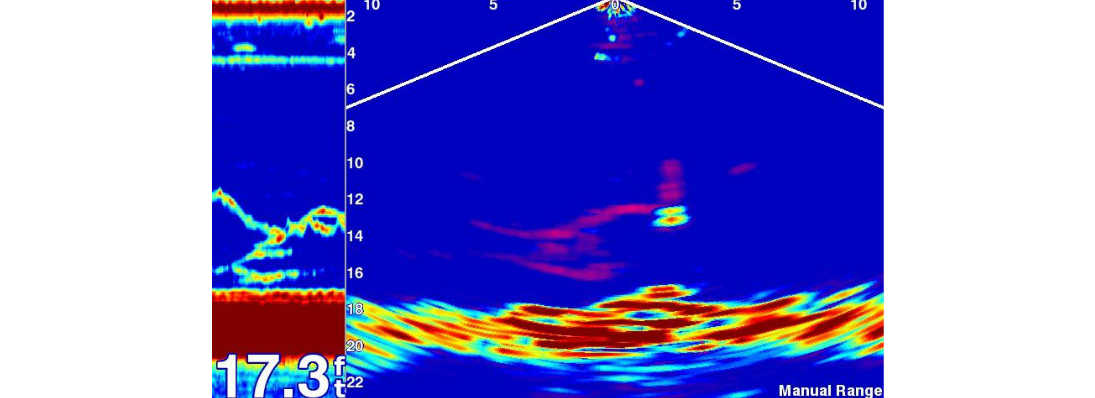 CHIRP SideVü(サイドビュー)は、ボートの側面の水中をほぼ全て画像で表示します。